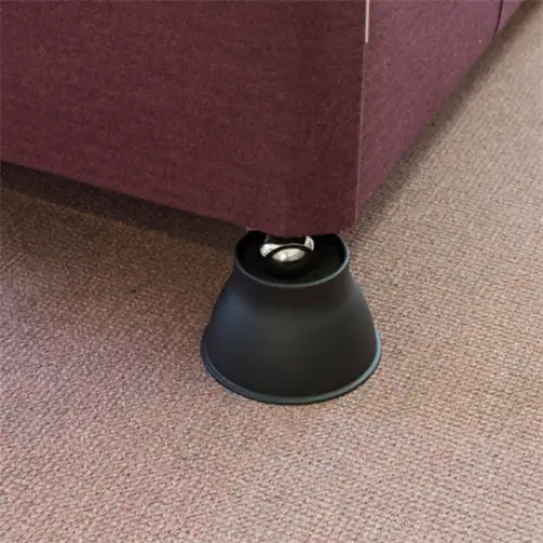 Set om 4. Diameter: 9 cm Varje fot placeras under stolarna eller sängens ben, vilket ger höjden 9 eller 14 cm beroende på modell.För att benet inte ska glida ligger en antihalkmatta i botten. En nersänkningi mitten gör att smalare ben står stadigare. Svart Maximal belastning: 380 kg