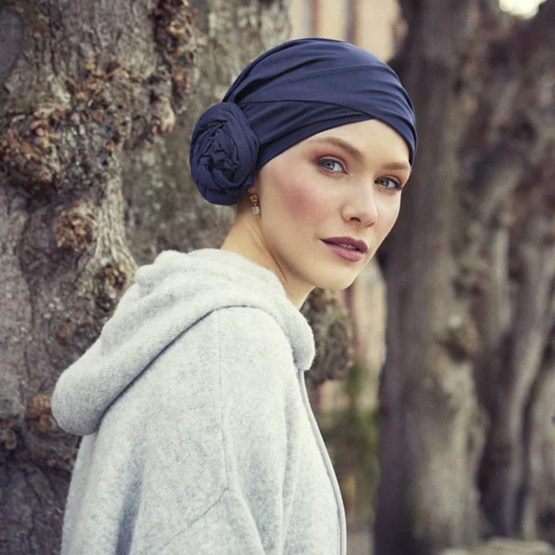 Denna turban är speciellt designad för kvinnor som upplever håravfall eller har förlorat håret på grund av sjukdom, medicinering eller cellgiftsbehandling – kan även användas som yogamössa.